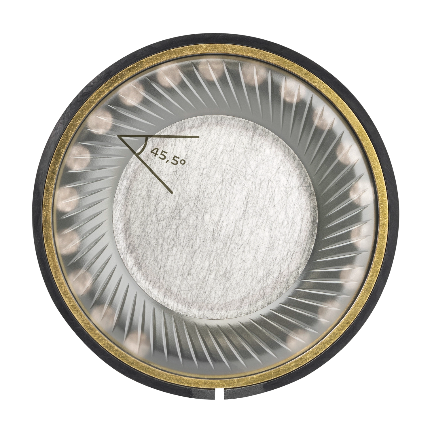 The torus surrounding the dome is made of PEEK (Polyether Ether Ketone), a semicrystalline polymer with excellent mechanical properties. PEEK’s high tensile strength and stiffness ensure the driver membrane maintains structural integrity under high stress, while its lightweight nature allows for quicker movement in response to audio signals. This enhances clarity and detail, making every note and nuance in your music come alive. Additionally, PEEK boasts superior internal damping characteristics, which reduce unwanted resonances and vibrations.