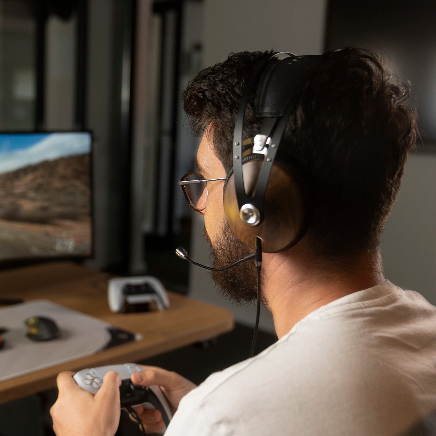 The 99 Classics features real walnut wood ear cups, a self-adjustable headband, and memory foam ear pads for lasting comfort. Paired with the Boom Mic's CNC-milled aluminum mic cover and flexible, adjustable arm, this headset embodies our commitment to quality. The integrated in-line controls ensure effortless adjustments, creating a harmonious and premium experience top to bottom.