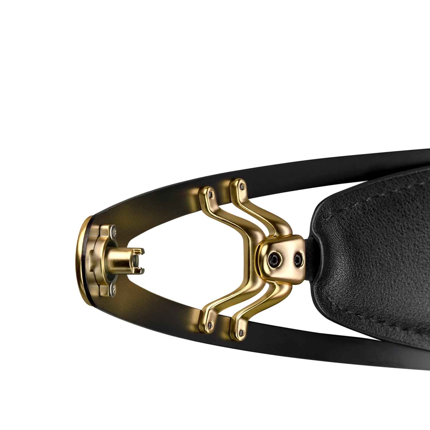 The frame’s metal hardware is crafted from cast zinc alloy, then electroplated and finished in a rich gold tone.