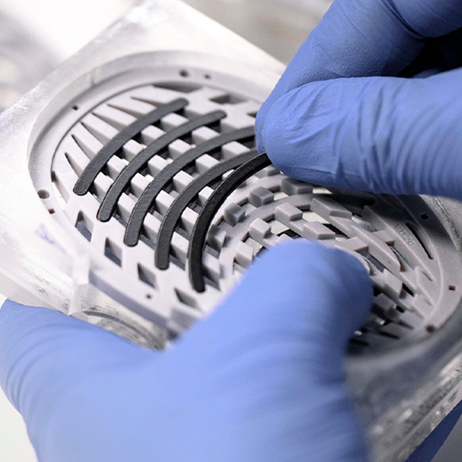 Reinforced polymer housing designed to withstand the demanding 12,7 N load generated by the Hybrid Magnet Array.