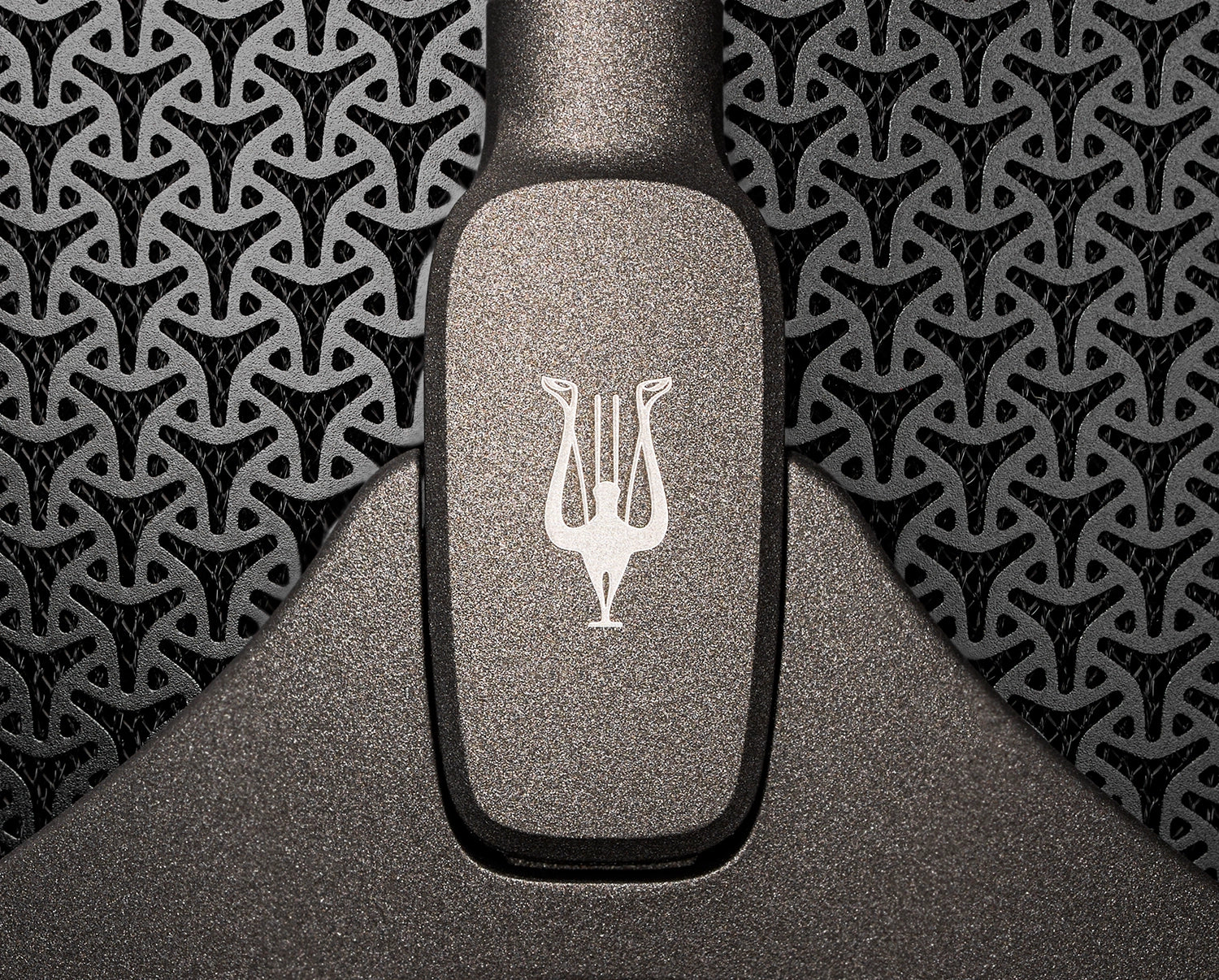 A deep black grille with intricate carvings completes the look, turning Elite into a futuristic take on personal audio design.