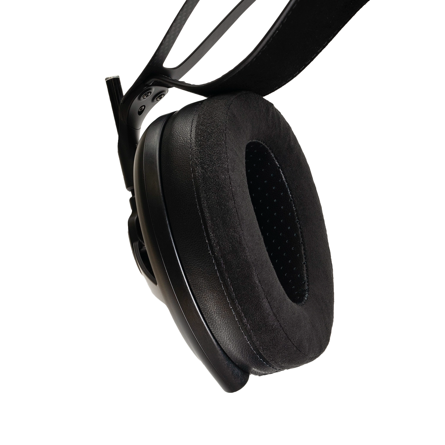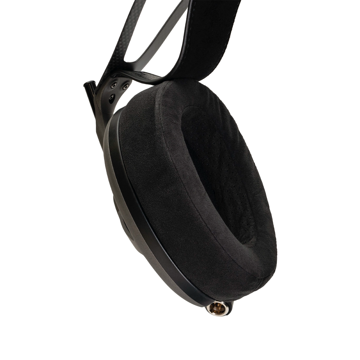 Our Duo ear pads are specifically tailored to match Empyrean II. Crafted from a precise blend of premium leather and Alcantara®, they introduce a contemporary dimension to the signature sound profile of Empyrean II.